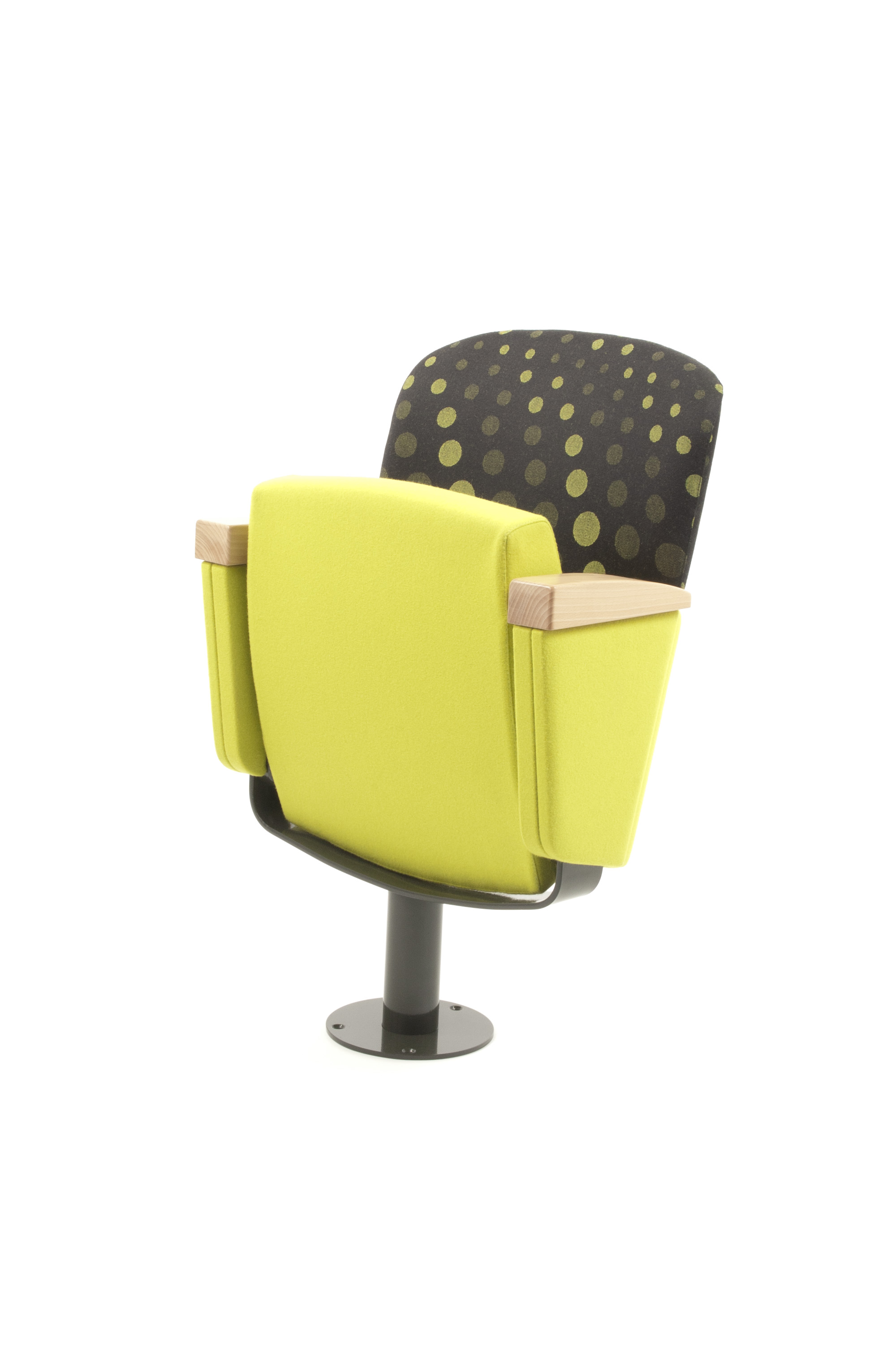 Trendy theater / auditorium seat marked by his tubular 2-piece back. The round shapes give the possibility of playfulness creations with the upholstery. Numerous finishing options as: